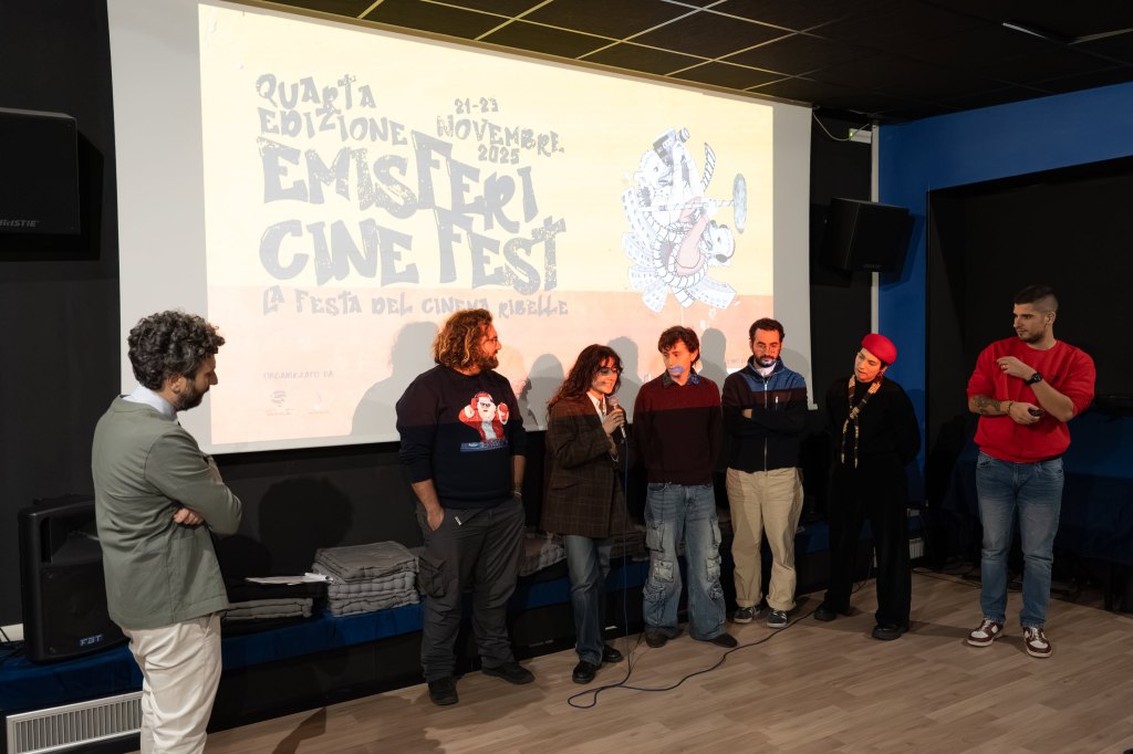 È terminata domenica 23 Novembre la IV edizione dell’Emisferi CineFest, manifestazione cinematografica organizzata da Tersite Film e dall’associazione Vita Via Est Odv che promuove le nuove voci della settima arte. Per tre giorni consecutivi, dal 21 al 23 Novembre, il cinema “Il piccolissimo” di Ciampino ha ospitato giovani autrici e autori provenienti da tutta Italia che hanno presentato i loro film a una platea di spettatori interessata e partecipe. I talk con il pubblico e con i presentatori, Francesco Caselli (giornalista, scrittore e speaker radiofonico) e Constantin Rusu (regista e produttore cinematografico) hanno trattato svariati temi, fra cui la violenza di genere, le dipendenze patologiche, l’abbandono delle persone anziane, le guerre odierne e i drammi recenti del nostro Paese (es. il terremoto dell’Irpinia, il cui anniversario è stato proprio il 23 Novembre e ricordato da due registi irpini in gara).